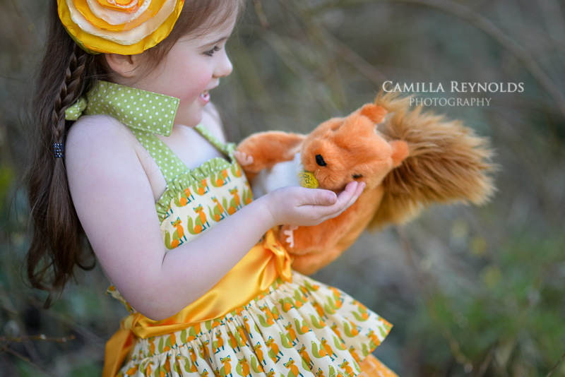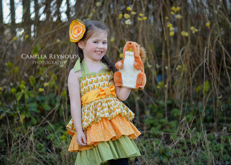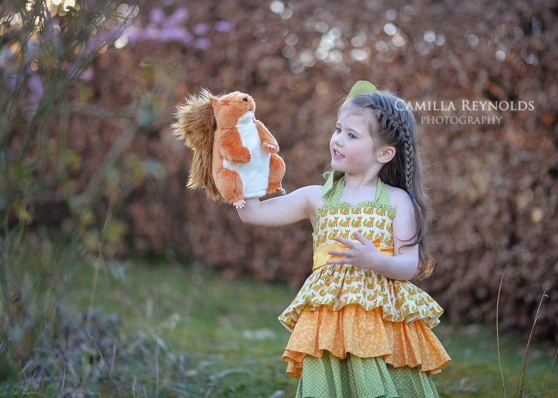Here are some of my favourite photos from a recent child photo shoot. I was lucky that my little model totally ignored me and started playing with the squirrel puppet that I gave her straight away. She quickly found little furry catkins to “feed” her new friend and was completely lost in her imaginary world. It helped me to get the shots that I wanted – natural, fun and very cute. Never mind lots of running around trying to catch up with her – it was all worth it in the end 🙂