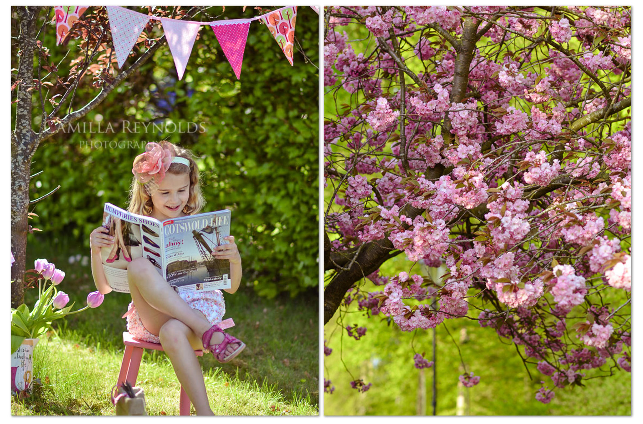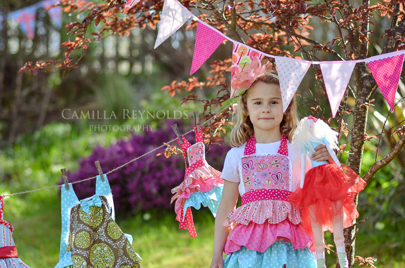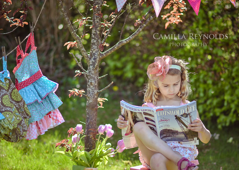 I photographed this adorable girl in my front garden. I had a range of cute baby dresses to photograph and this set up seemed a good idea as I could capture them all in one shot. My little model was very happy to help out and was just perfect for the job. My latest copy of Cotswold Life Magazine made a good prop too!